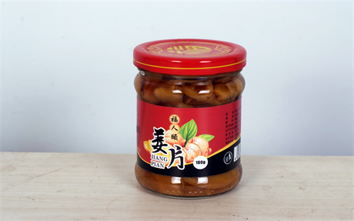11.“姜片”———采用优等嫩姜,加入陈年酱油使之融合,经多道工序荫制,遂成珍品。其姜味辣而爽口,酱味浓香,尽显原始风范,让你在享受舌尖上美味的同时,又能感受到生姜的保健功效。